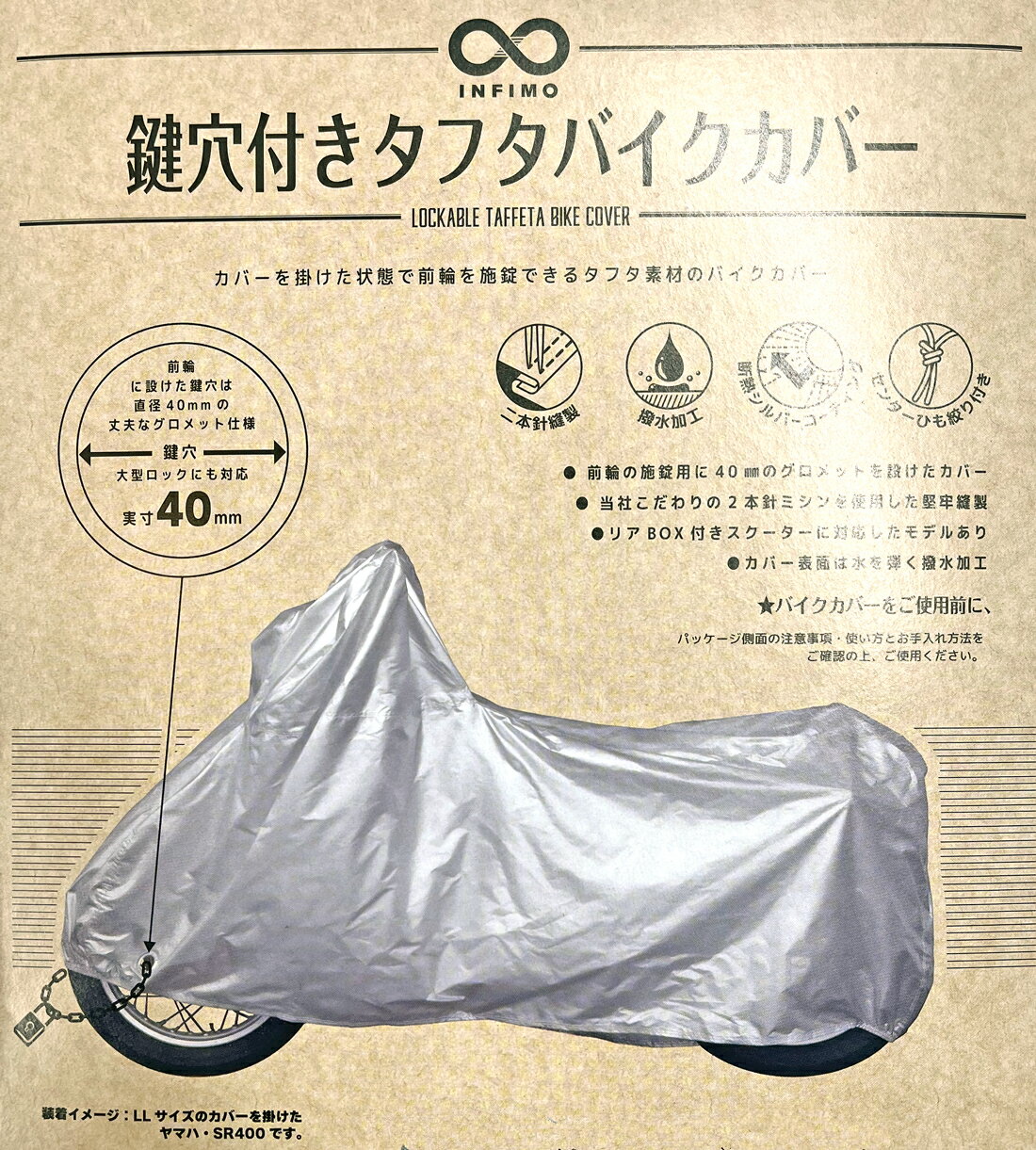 【品名】 格安・定番 鍵穴付 タフタバイクカバー 【適合】画像の適合表及び下記注意事項を確認の上お選びください。※車種の記載が無い場合は、バイクカバー実寸法を参考の上お選びください。【特徴】 低価格商品ですが二本針ミシンによる丈夫な縫製は 当社のこだわったポイントです。 盗難防止、マンション等の駐輪場で自転車からの傷防止にもおすすめします。 【仕様】 ・前輪部に鍵穴付き(φ40mmアイレット) ・...